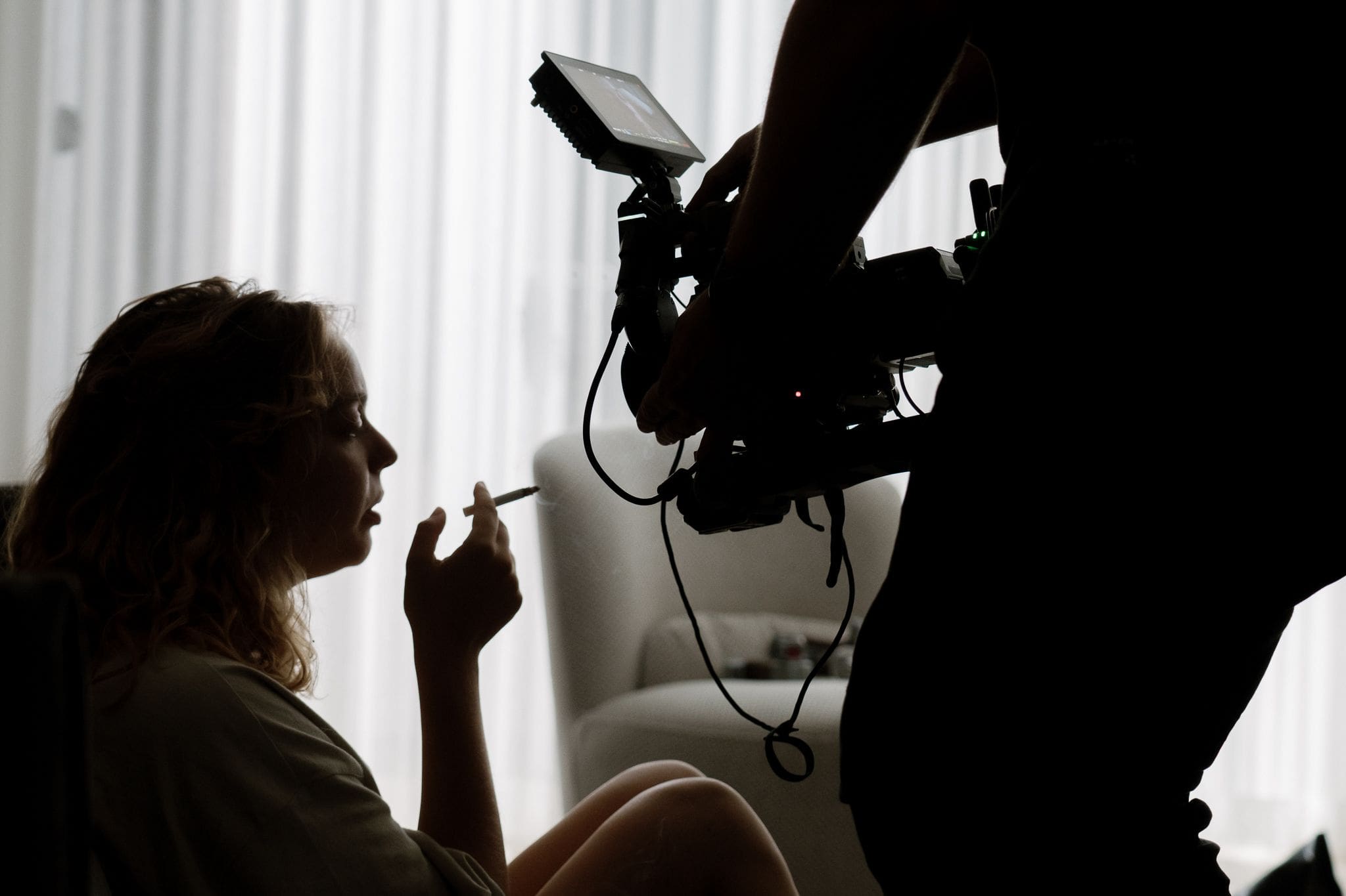 The sound department, led by Marvi Pathania as Sound Mixer, worked tirelessly to capture the subtle audio nuances that would complement the visuals, while Lucinda and Kevin Wang, our Gaffers, helped bring my vision to life with their expertise in crafting the perfect lighting setups. Karli handled the Hair and Makeup, creating looks that enhanced the characters’ otherworldly appearances, particularly in the film’s more surreal moments. Behind the scenes, Nina Franova captured the magic unfolding on set as the BTS Photographer, preserving the process that led to the film’s haunting visuals.